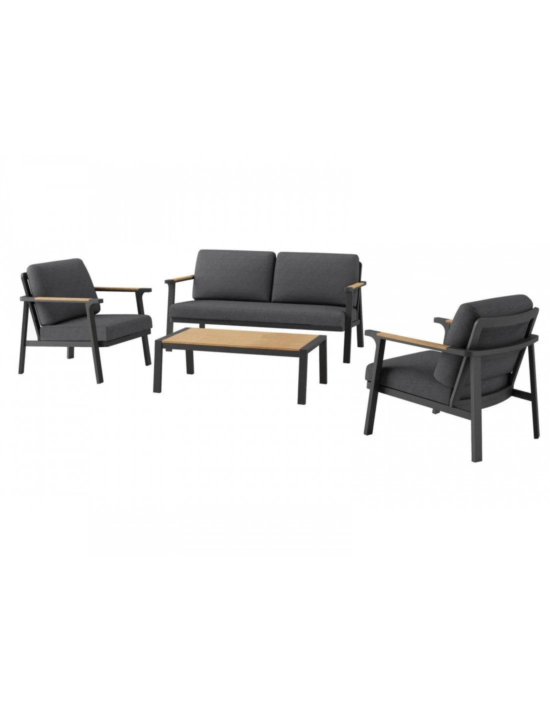 Salon De Jardin 3 Places – Aluminium/Wicker/Coussins – Graphite