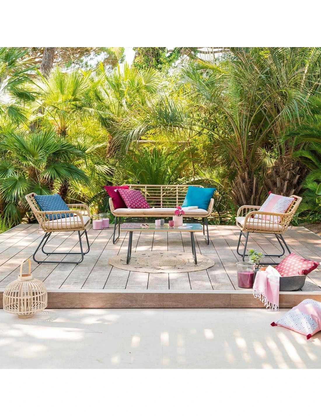 Un salon d’extérieur qui s’intégrera parfaitement dans un univers chaleureux et convivial avec sa résine d’aspect naturel !