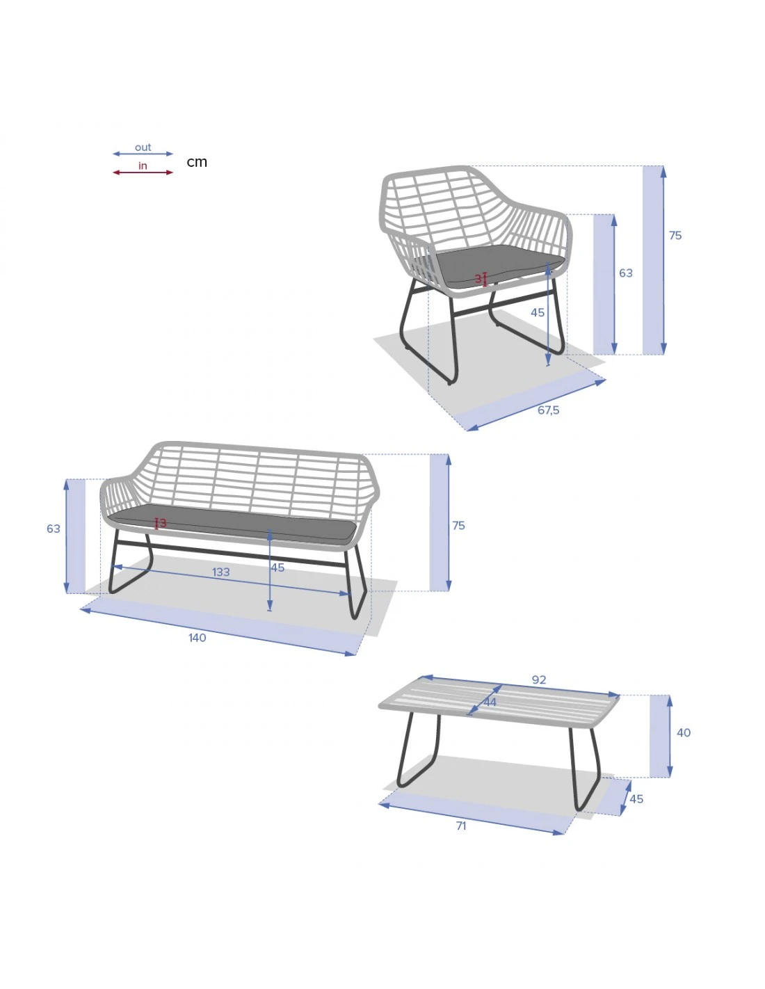 - L.90 x P.45 x H.40 cm