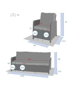 - L. 174,5 x P. 75,5 x H. 80 cm
