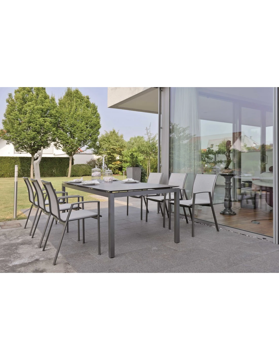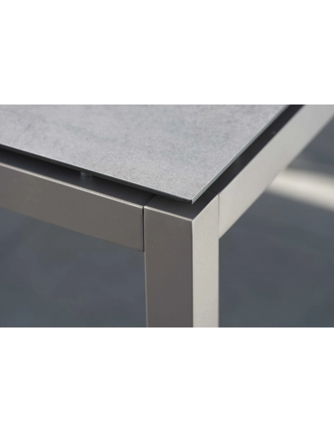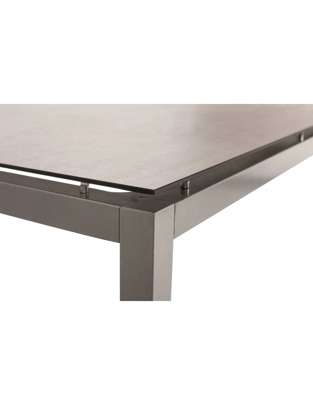 Structure de table en aluminium graphite de 160x90cm, pour 6 personnes, plateau HPL Silverstar vendu séparément.