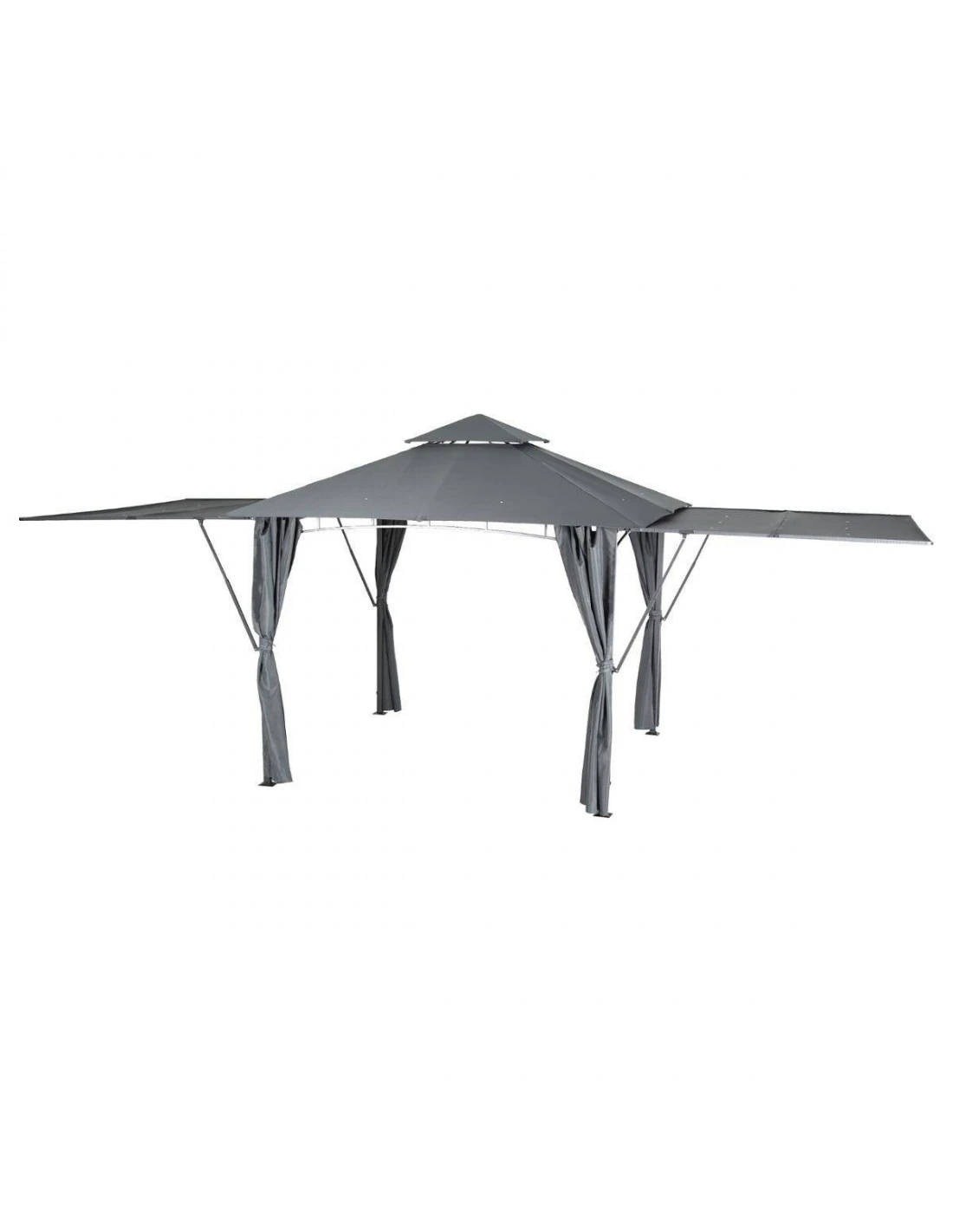 Tonnelle de jardin bien équipée avec 4 rideaux et un auvent pour vous protéger du froid et du soleil !