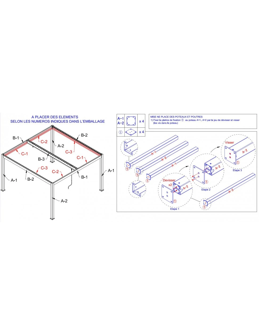- Poteaux de 12 x 12 cm – Ep.: 1.4 mm
