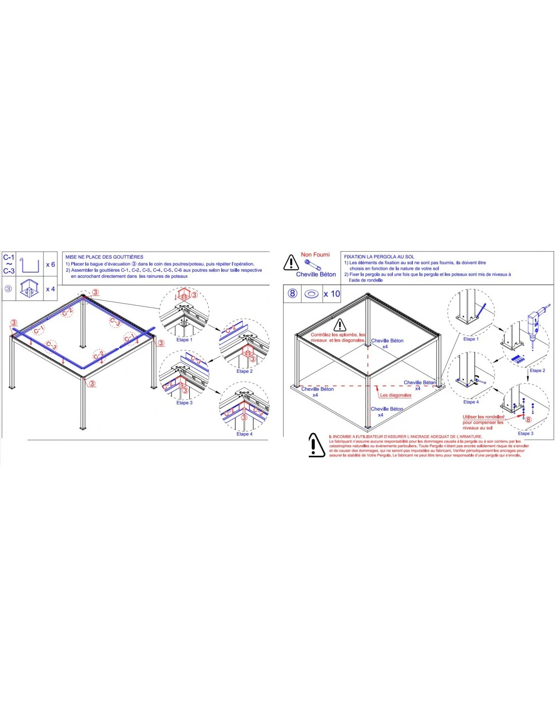 - Fixation sur dalle béton avec cheville chimique (cheville non fournis)