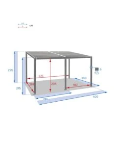Tonnelle Bioclimatique de 3 x 4 m, inclinĂ©e qui permet d’ĂŞtre adossĂ©e Ă un mur, tout en aluminium avec lames orientables par manivelle !