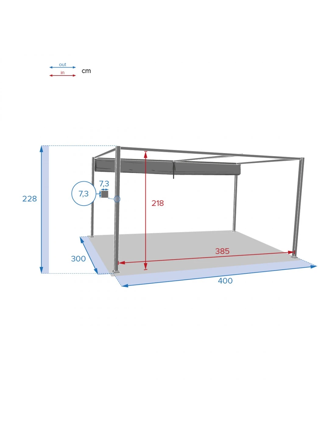 Tonnelle de jardin Ă toit plat, avec une toile polyester de toit rĂ©tractable qui permet d’ajuster la luminositĂ© selon ses envies.